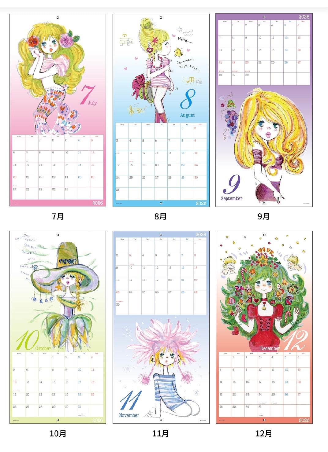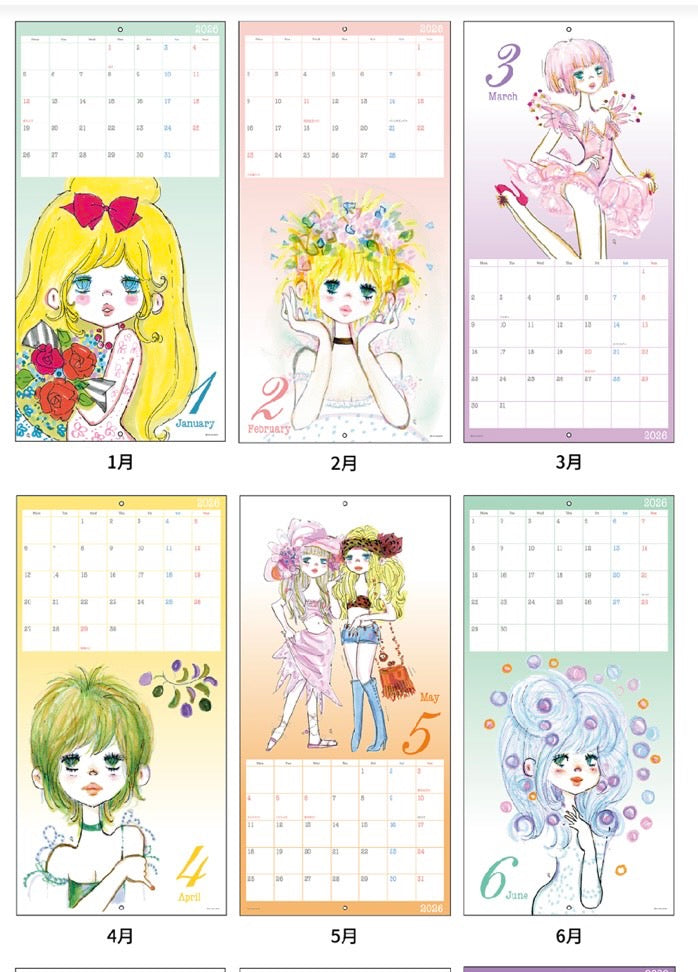 【水森亜土】2026ウォールカレンダー「壁掛けカレンダー」